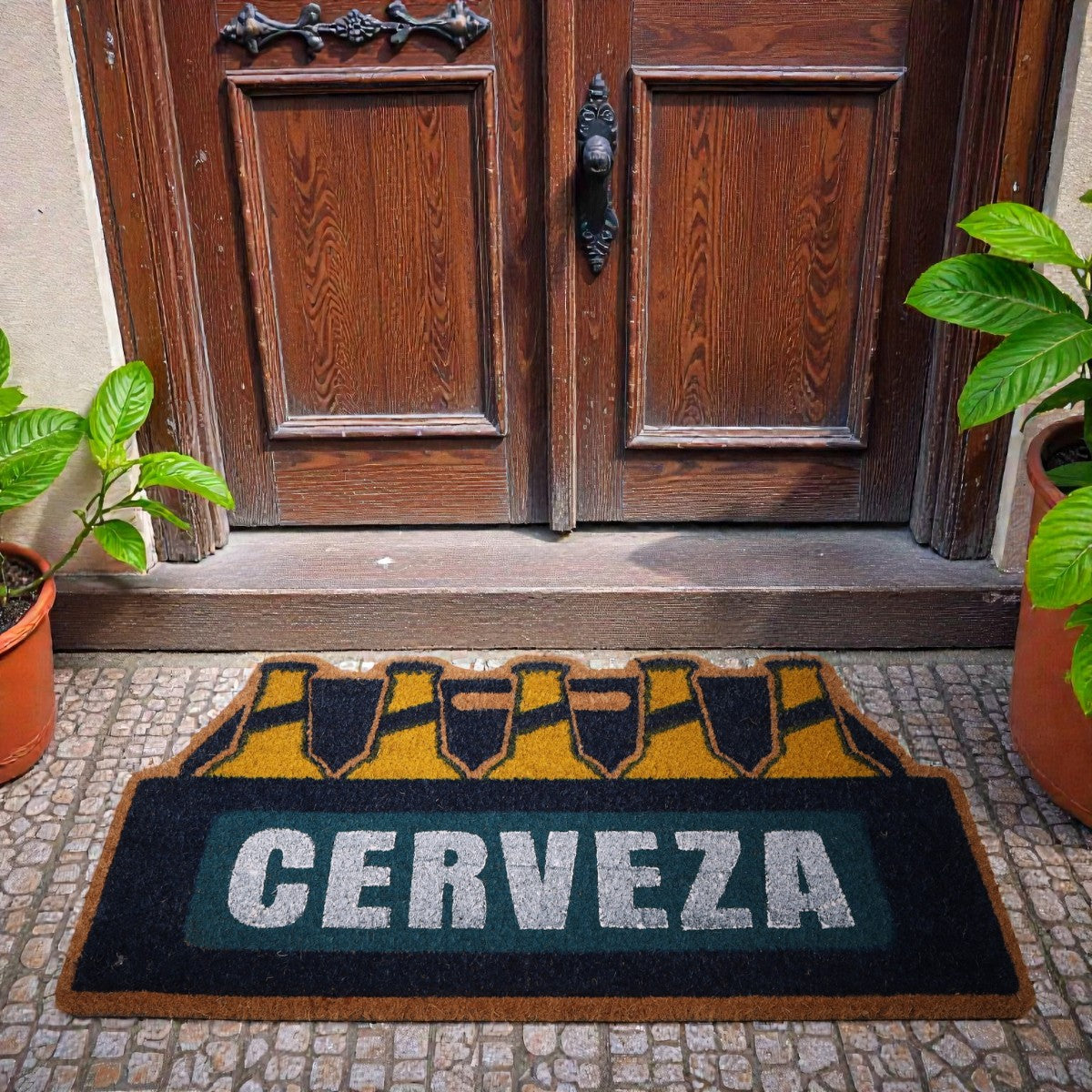 Felpudo de coco divertido “CERVEZA” – 70×40 cm – Fibra de coco natural con base antideslizante PVC | Alfombrilla entrada interior/exterior protegido