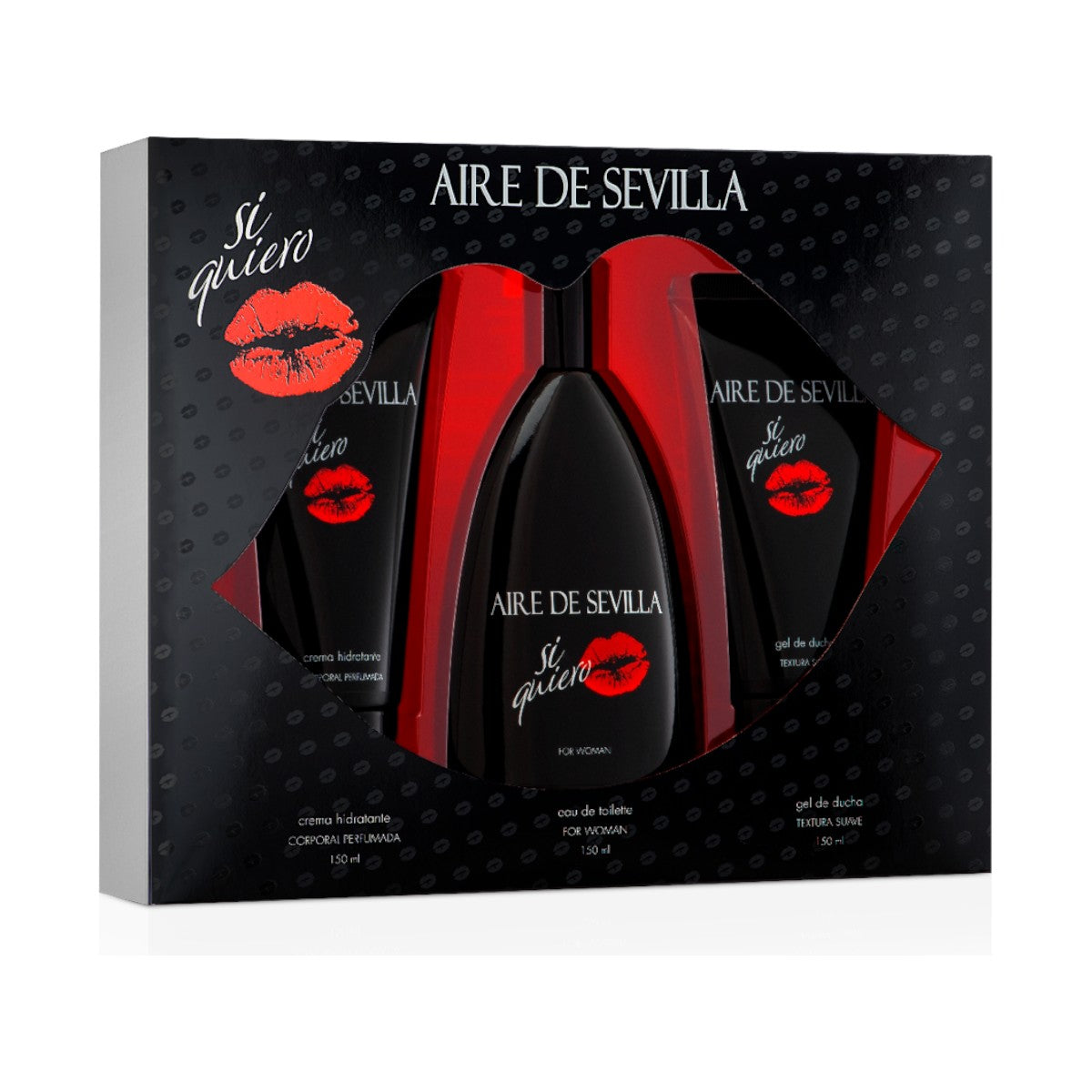 AIRE DE SEVILLA SÍ QUIERO Estuche de cosmética para mujer con Perfume Gel de ducha suave y Crema Hidratante corporal perfumada Cofre de regalo de ritual perfumado (150 ml cada uno)