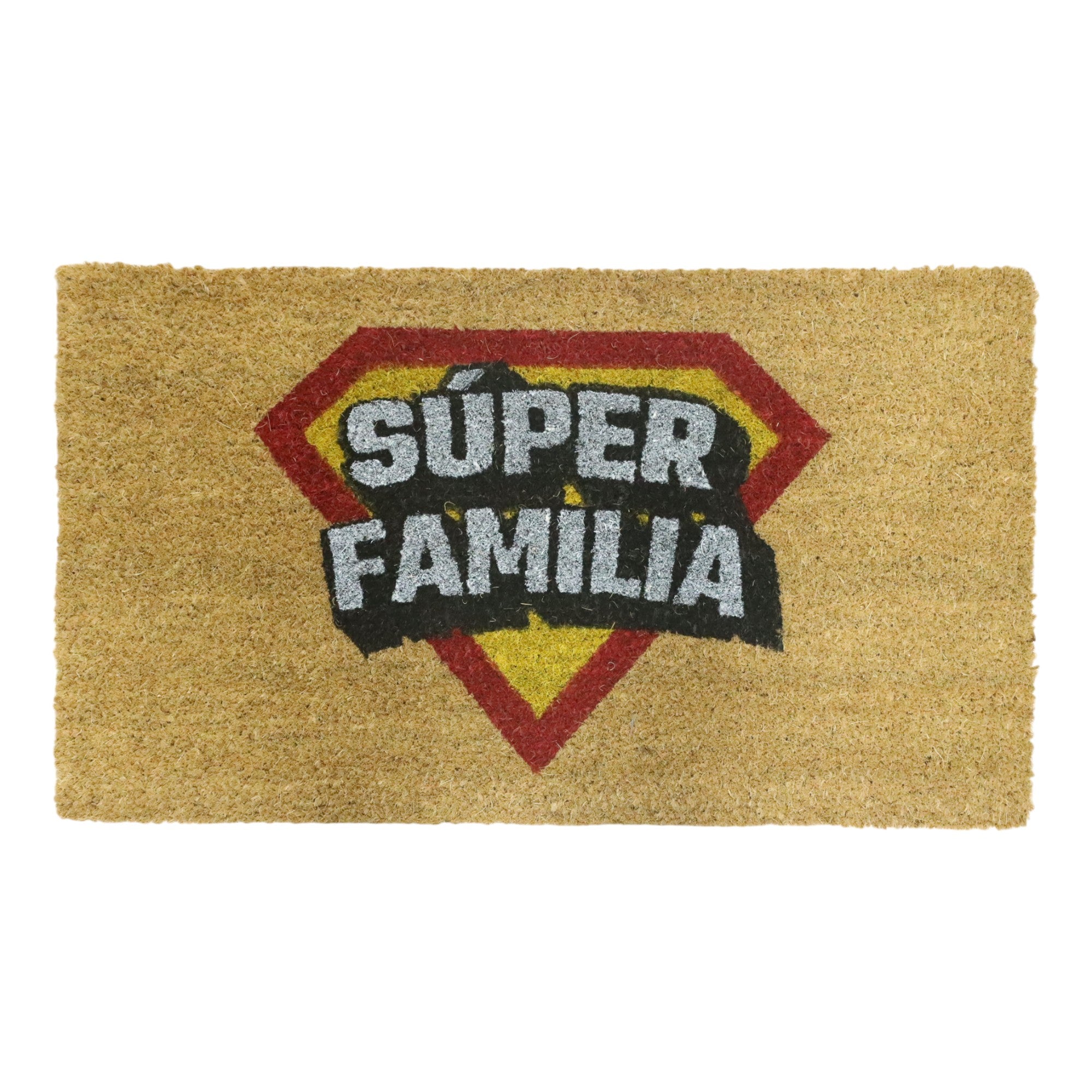 Felpudo de Coco Natural Antideslizante Diseño “Super Familia” 40x70 cm Alfombra de Entrada para Exterior e Interior