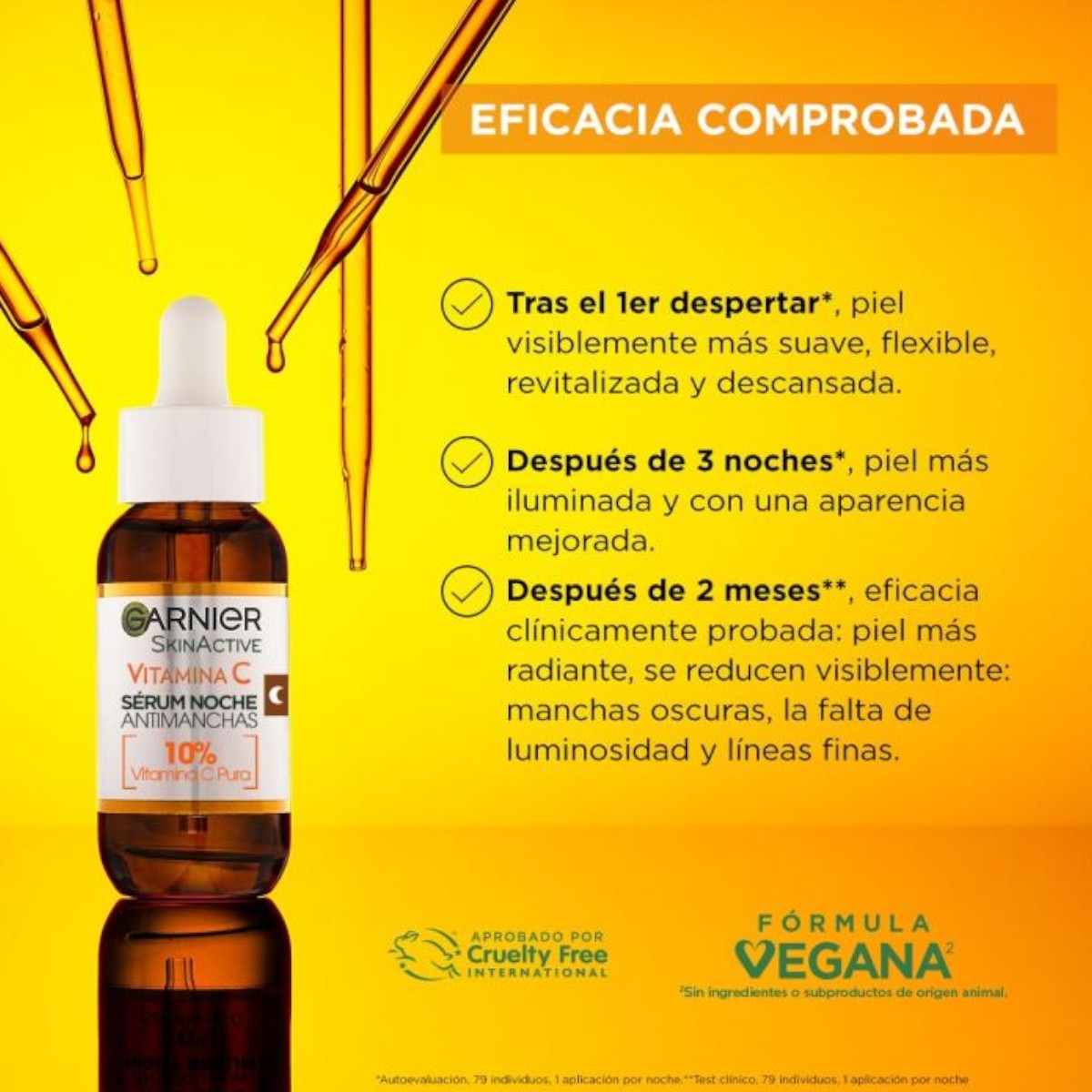 Enjoy dark spot-free, brighter skin without fine expression lines every day with Garnier's Vitamin C Night Serum