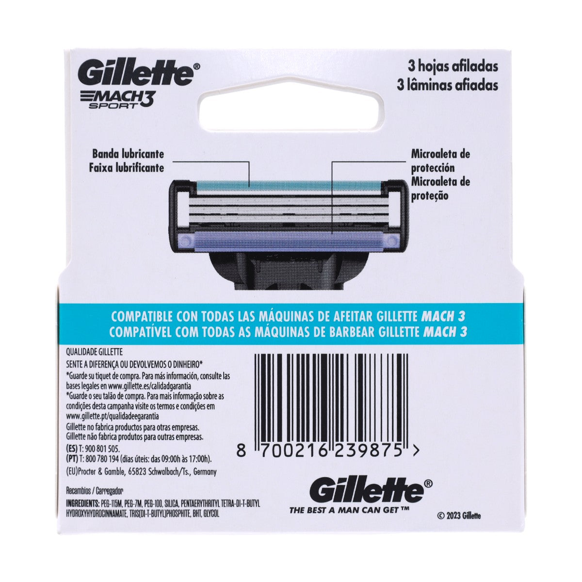 Disfruta de un afeitado apurado y confortable con este pack Gillette Mach3 Sport (4 cuchillas de recambio). Cada cuchilla incorpora tres hojas afiladas, banda lubricante que ayuda al deslizamiento, y Microfin / piel-guard que prepara la piel antes del corte, para que cada pasada se sienta suave y eficaz.