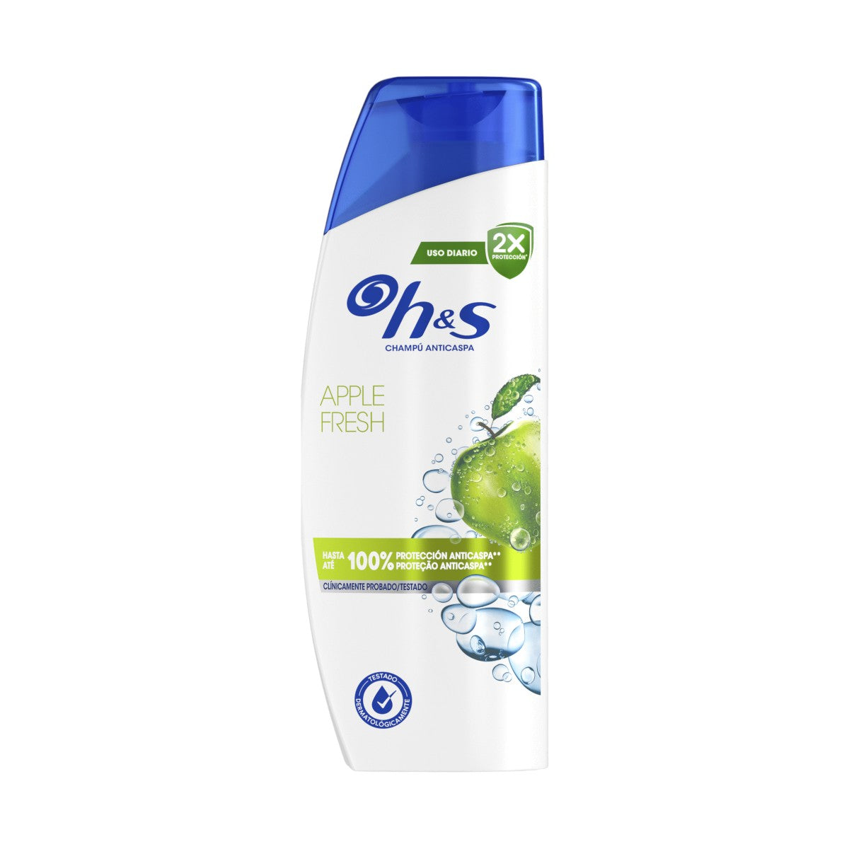 El Champú y Acondicionador Anticaspa H&S Apple Fresh Todo en Uno para todo tipo de pelo y cuero cabelludo es efectivo incluso contra la caspa más persistente. Este champú de uso diario para hombres y mujeres, con fórmula Microbiome Balance, actúa sobre la causa principal de la caspa y equilibra el microbioma del cuero cabelludo. Funciona contra la caspa visible e invisible, liberando el doble de ingredientes protectores que penetran en los poros para evitar que reaparezca la caspa severa y persistente. La fórmula del champú Todo en Uno clínicamente probada, dermatológicamente testada y con pH equilibrado contiene un 25% más de agentes acondicionantes que el champú Head & Shoulders.