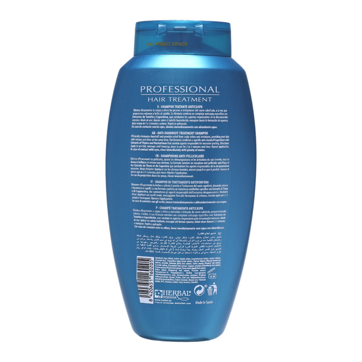 Herbal Professional Hair Treatment Champú Anticaspa 500 ml | Sin Silicona, 0% Parabenos y Colorantes | Con Extractos Naturales de Capuchina y Tomillo para cuero cabelludo limpio
