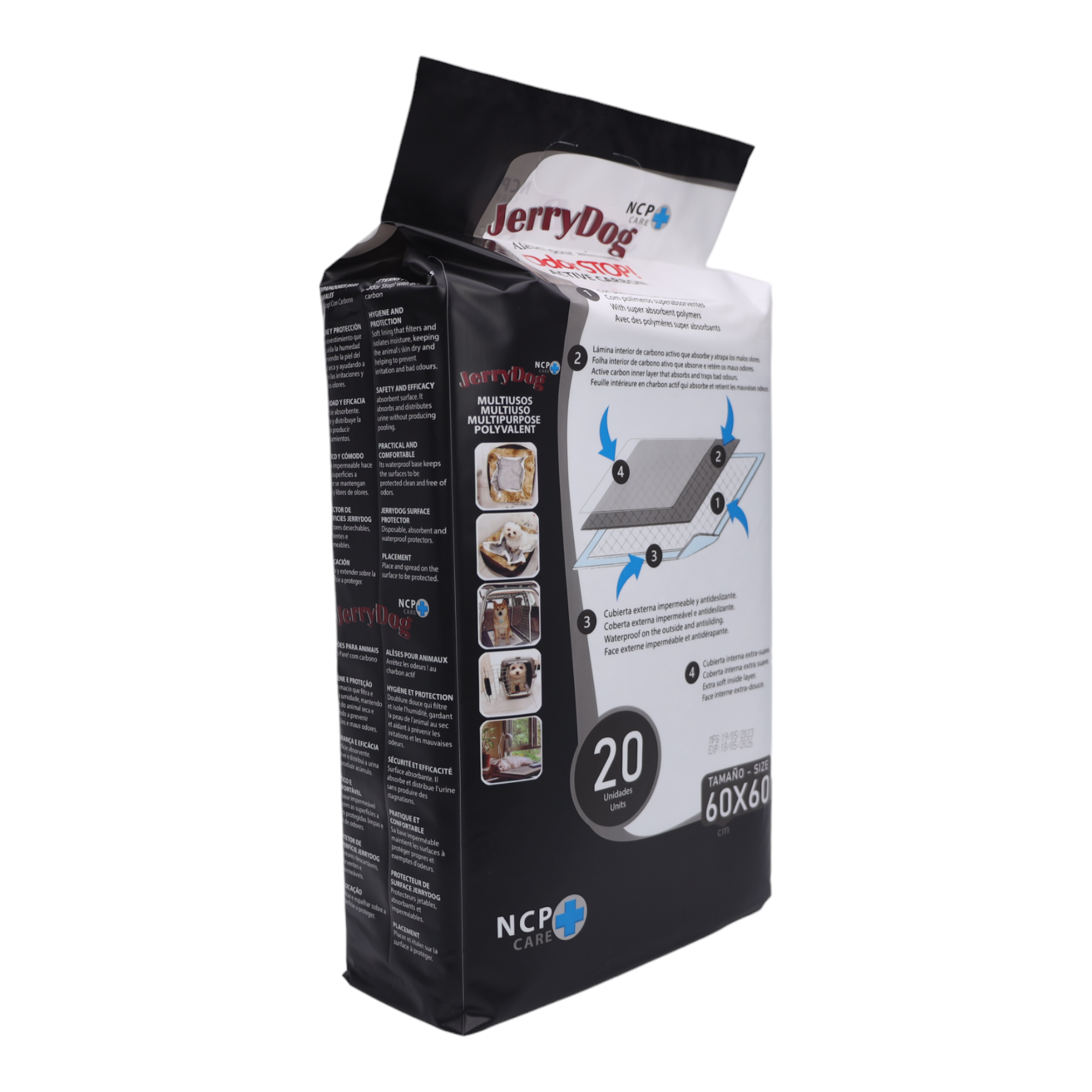 JerryDog Pet Pads are designed to provide an effective and convenient solution in managing the hygiene of pets, such as dogs and cats. They are composed of a combination of key materials, including activated carbon, SAP (super absorbent polymers) and cotton, which work together to ensure optimal performance.