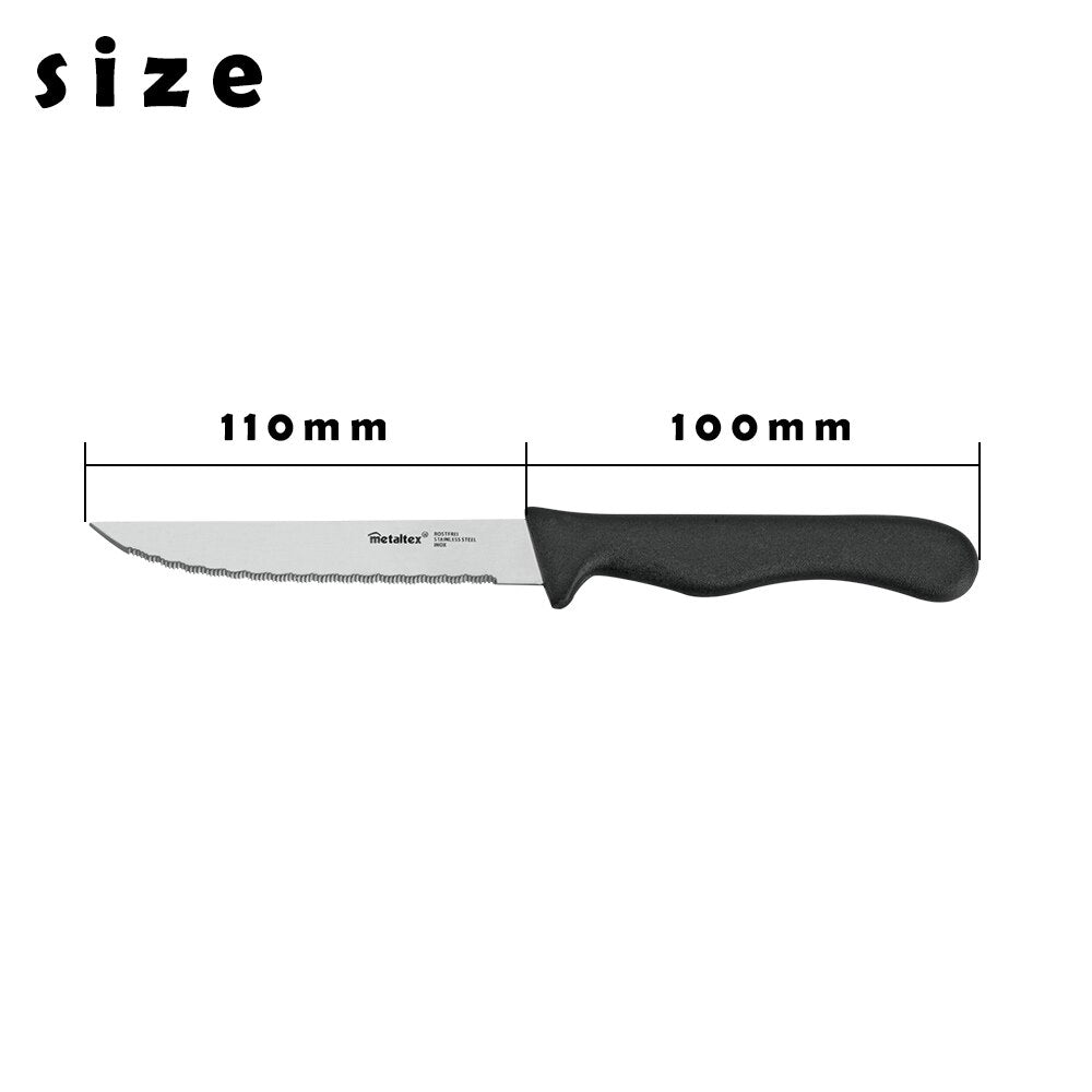 Set of 6 BASIC Steak Knives Micro-serrated Stainless Steel Blade Ergonomic PP Plastic Handle Black Color