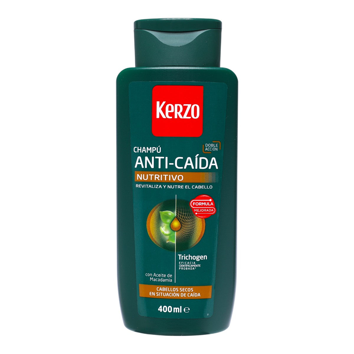 Kerzo Champú Anti-Caída Nutritivo con Aceite de Macadamia 400 ml | Doble acción: fortalece y nutre