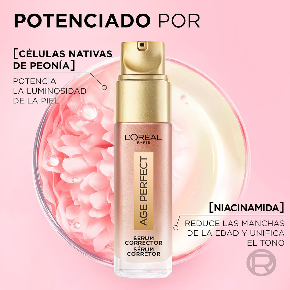 L'Oréal Paris Age Perfect Fast-Acting Anti-Dark Spot Correcting Serum for Mature Skin. Golden Age Age Perfect Brown Spot Correcting Serum has been formulated for aging skin to act quickly on the appearance of brown spots on the face, neckline and hands . With proven effectiveness in reducing age spots, this serum offers a fast action that will transform the appearance of your skin. It combines the power of native peony cells and niacinamide for visible results in a short time.