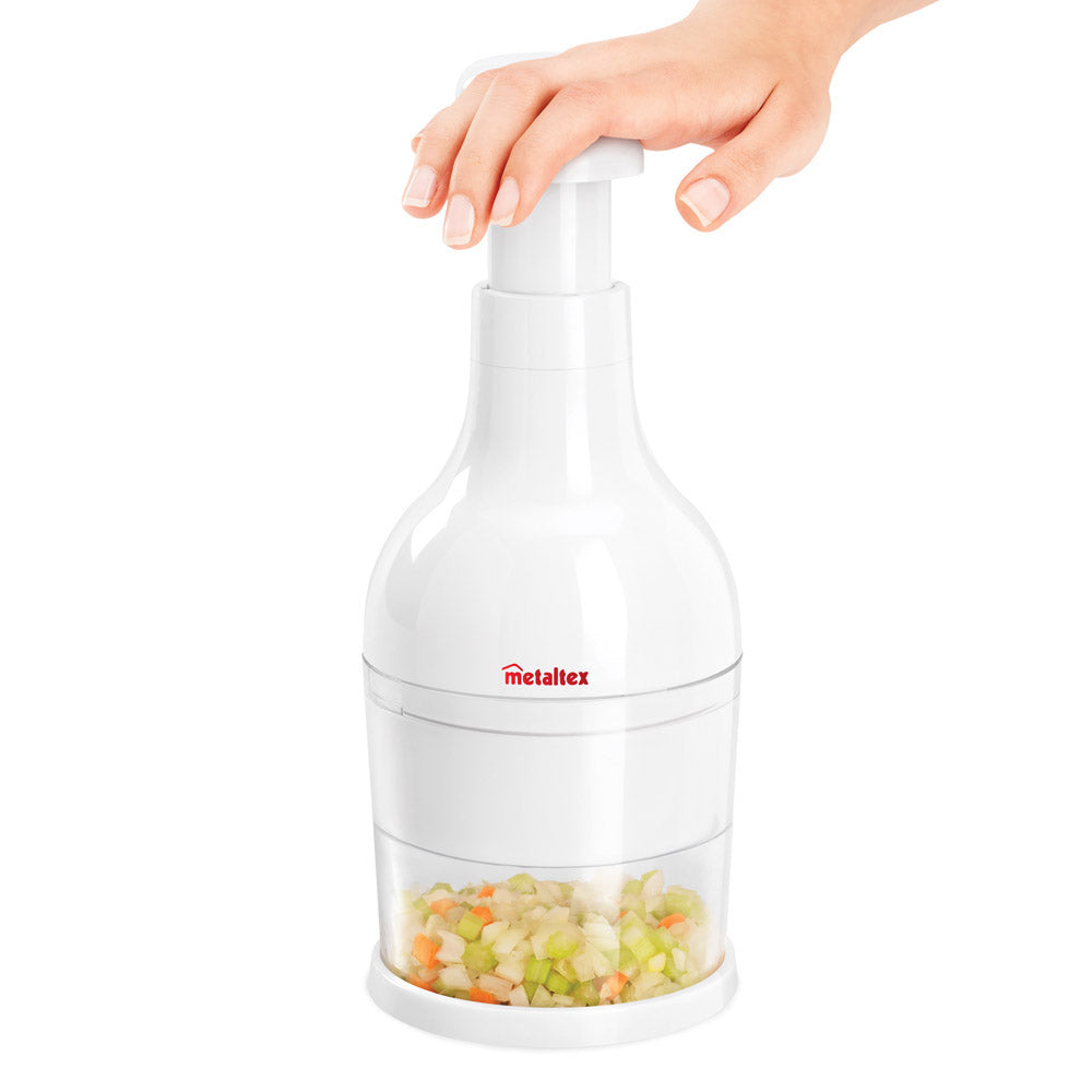 METALTEX ROTO-CUTTER vegetable cutter Transparent PS container, stainless steel blades and white ABS body Measurements: 27 cm