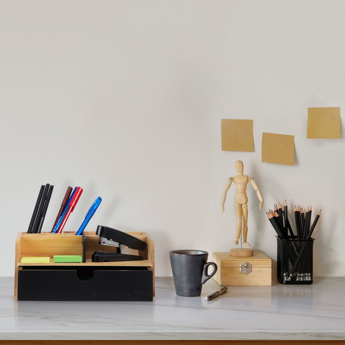 El Organizador de Escritorio de Bambú con Cajón es una solución práctica y elegante para mantener tu espacio de trabajo ordenado y libre de desorden. Fabricado en bambú natural, este organizador ofrece una opción ecológica y resistente para almacenar tus objetos esenciales, como bolígrafos, papeles, tarjetas o accesorios pequeños. Su diseño incluye un cajón integrado que permite guardar de manera discreta y segura artículos más pequeños, manteniendo el escritorio limpio y organizado. Ideal para oficinas en casa o espacios de trabajo, este organizador no solo maximiza la funcionalidad, sino que también agrega un toque de sofisticación y armonía al entorno, gracias a la calidez y estética del bambú. Perfecto para quienes buscan un equilibrio entre orden y estilo.
