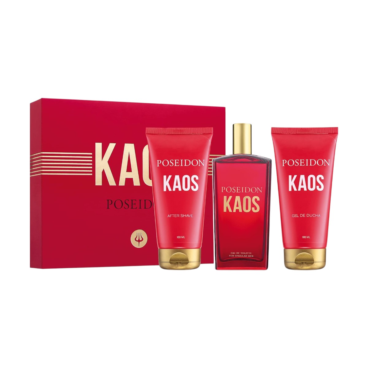 Poseidon KAOS – Estuche Hombre | Eau de Toilette 150 ml + After Shave 100 ml + Gel de Ducha 100 ml | Fragancia cítrica-amaderada | Idea de regalo