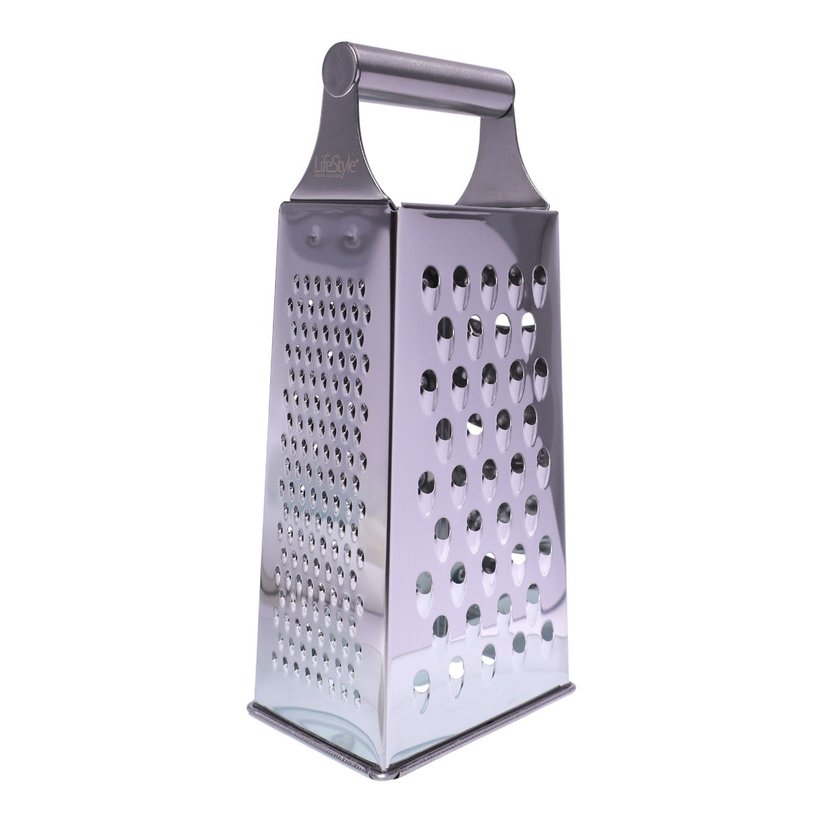 El rallador de cocina LifeStyle de 4 caras es un básico que no puede faltar en ninguna cocina. Su diseño tipo torre ofrece cuatro superficies diferentes con distintos tamaños de agujero, lo que permite rallar fino o grueso, obtener hebras para ensaladas o pizzas e incluso laminar alimentos. Es perfecto para queso, zanahorias, patatas, verduras, frutas, chocolate o frutos secos.
