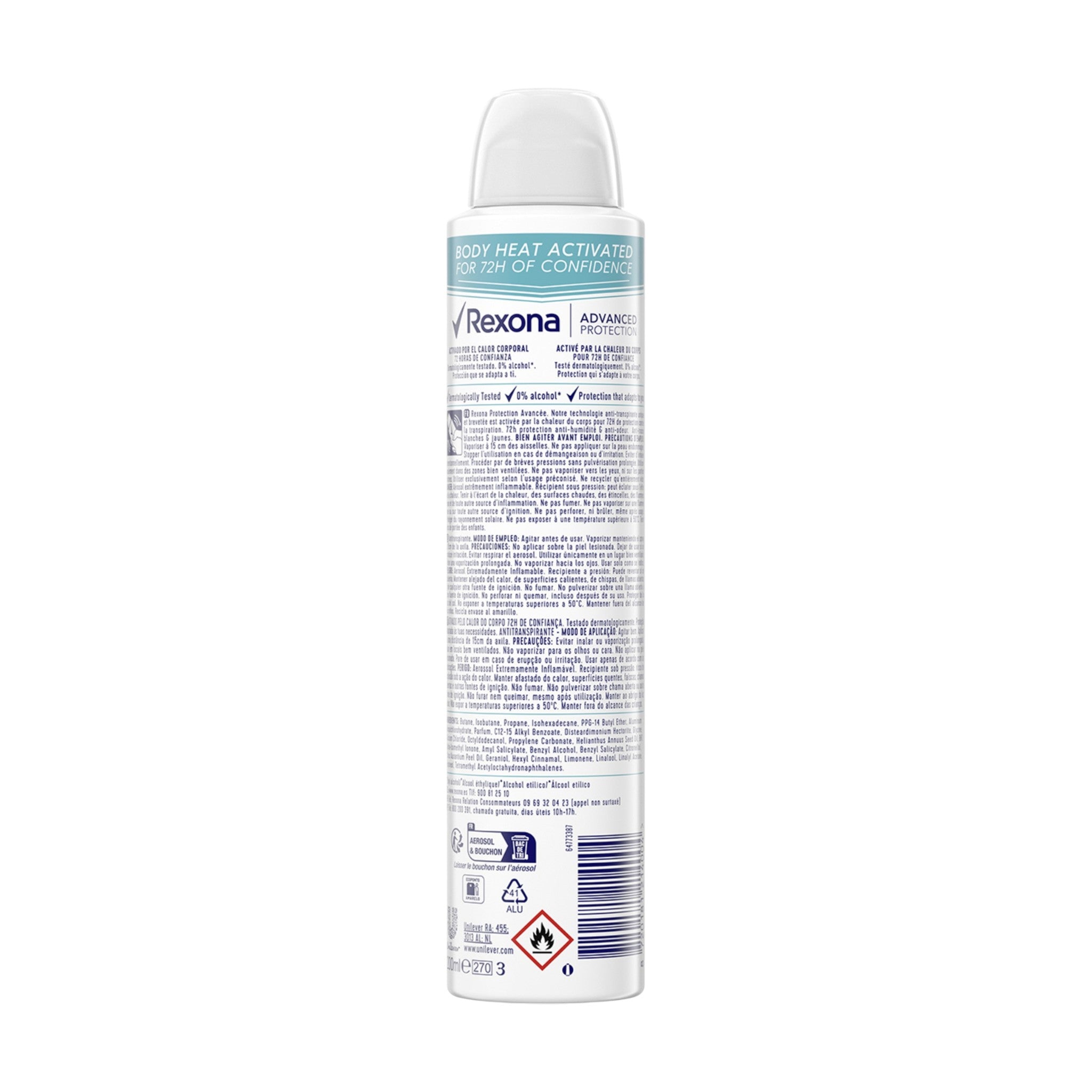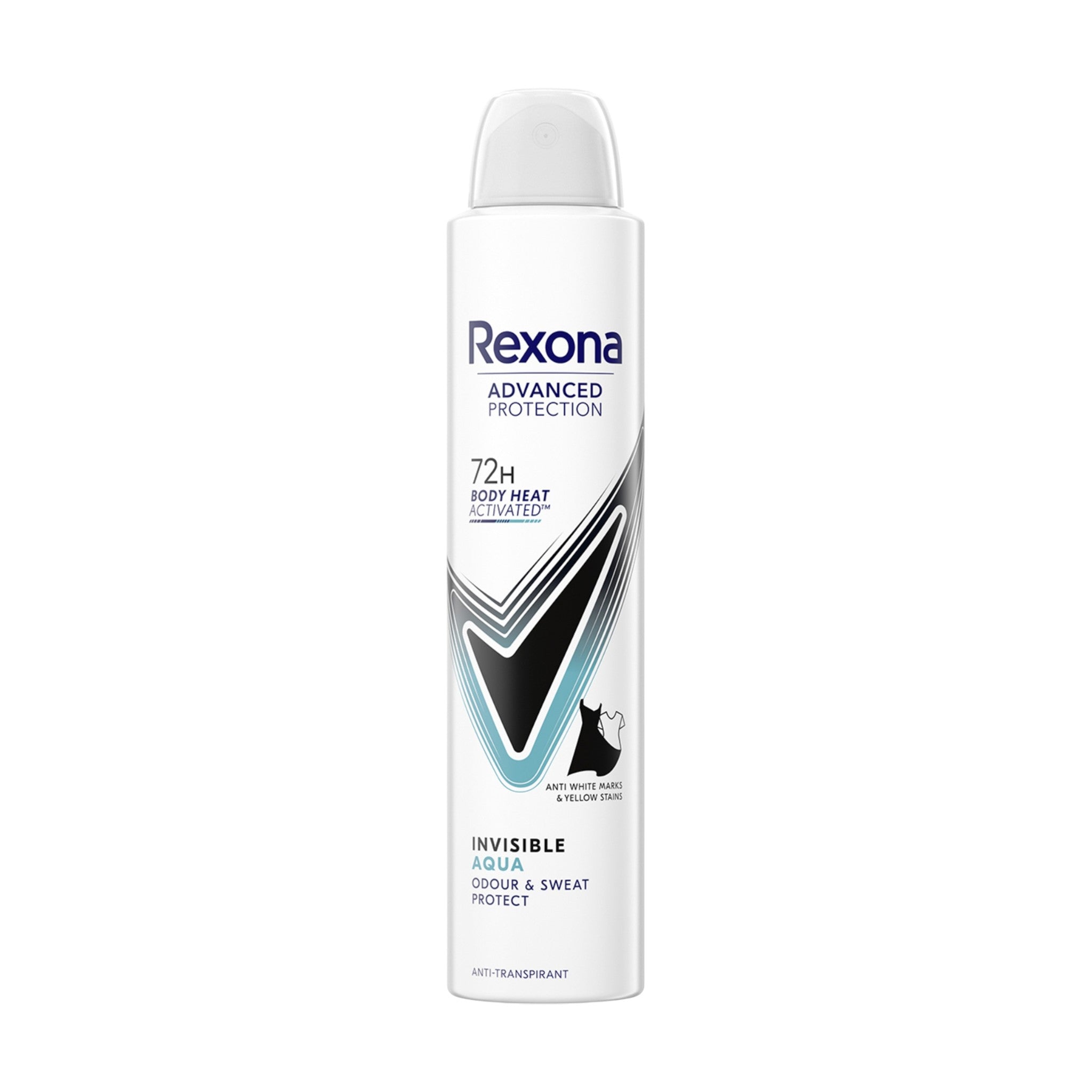 Rexona Advanced Protection Invisible Aqua Antitranspirante Spray 72H – Protección contra Sudor y Olor, Anti-Manchas Blancas y Amarillas, 200 ml