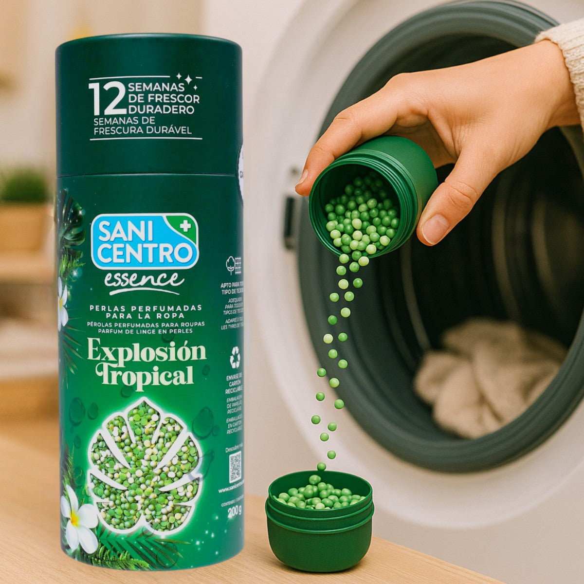 SaniCentro Essence Perlas Perfumadas para la Ropa “Explosión Tropical” – 12 semanas de frescor, intensidad regulable, 200 g
