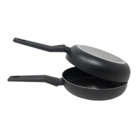 El cuerpo metálico ofrece una excelente distribución del calor para una cocción uniforme, mientras que los mangos ergonómicos permanecen más frescos para un manejo cómodo y seguro. Cuando no la uses como sartén doble, puedes separar las mitades y emplearlas como dos sartenes independientes de uso diario. Compacta y fácil de guardar, es una aliada ideal para quienes disfrutan de la cocina casera y quieren resultados profesionales sin complicarse.