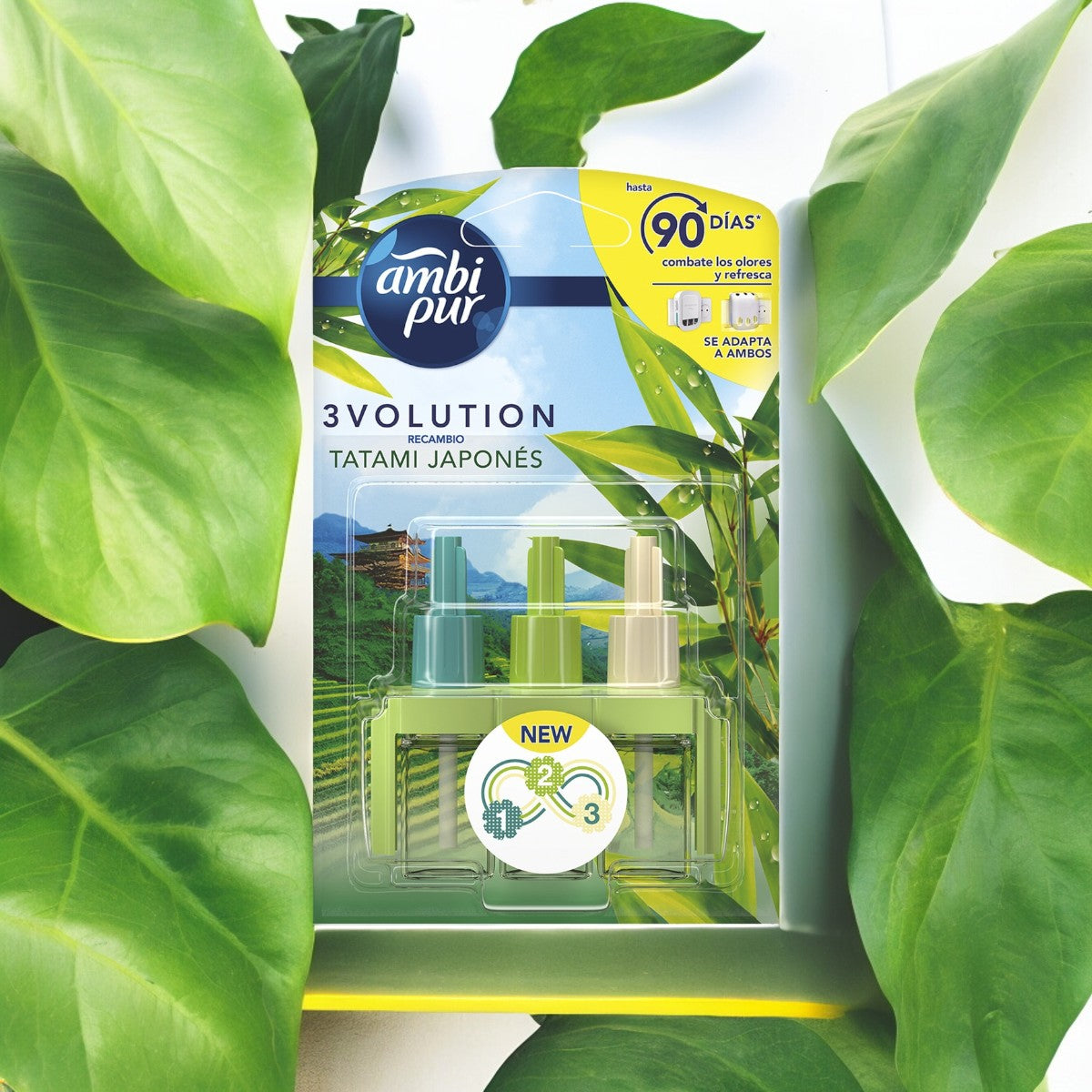 AMBIPUR 3VOLUTION Ambientador eléctrico Tatami Japonés 3 fragancias blister 1 recambio - El envase puede variar