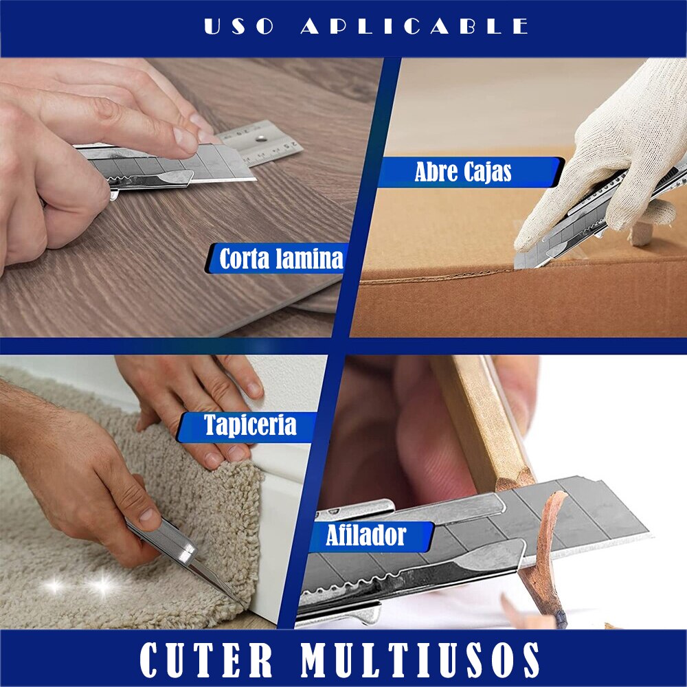 Cúter de Aluminio Fundido con cuchilla de 18 mm + 5 hojas de Recambio Multifunción Cuchilla Multiusos Retráctil de Agarre Ergonómico