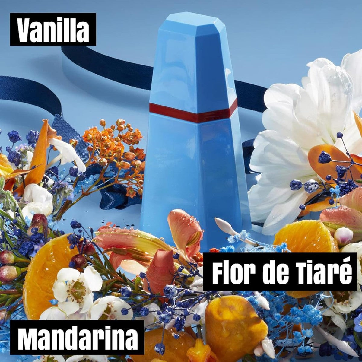 Como esta mítica actiz, el perfume LouLou es sensual, misterioso y salvaje, algo que se refleja en el frasco, con el lado inocente y vulnerable representado por el color azul, y el seductor y pasional del rojo.