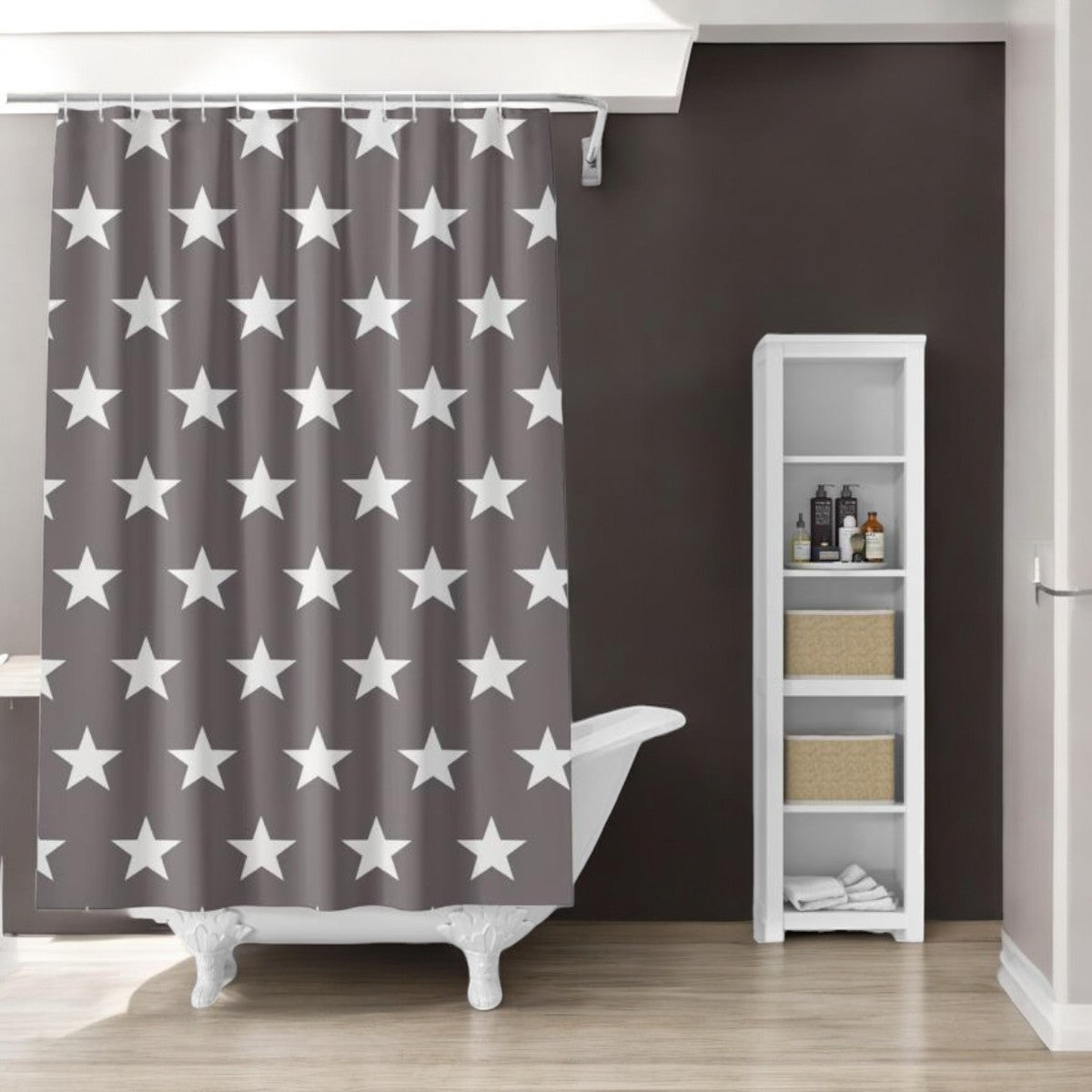 Esta cortina de baño es ideal para proteger el área exterior de la ducha o bañera de salpicaduras de agua, y también ayuda a mantener el baño más limpio y seco. Suele incluir ojales en la parte superior para facilitar su instalación, con ganchos (que pueden estar incluidos o no) para colgarla. Su diseño puede variar, con opciones de colores sólidos, patrones, o temáticas decorativas que se adaptan a diferentes estilos de baños.