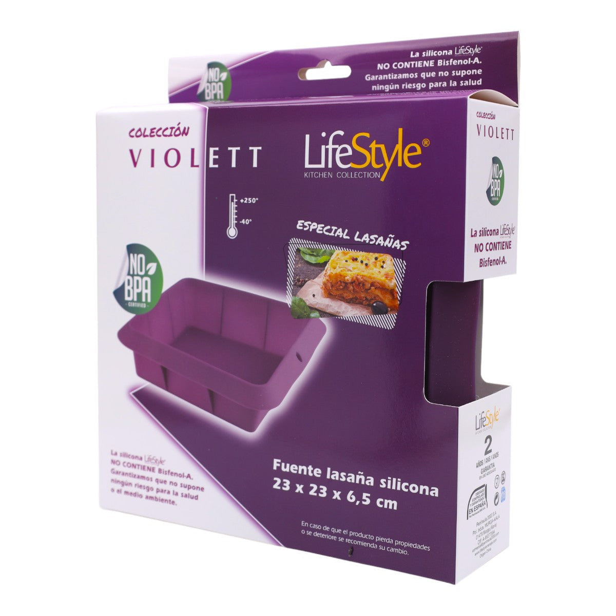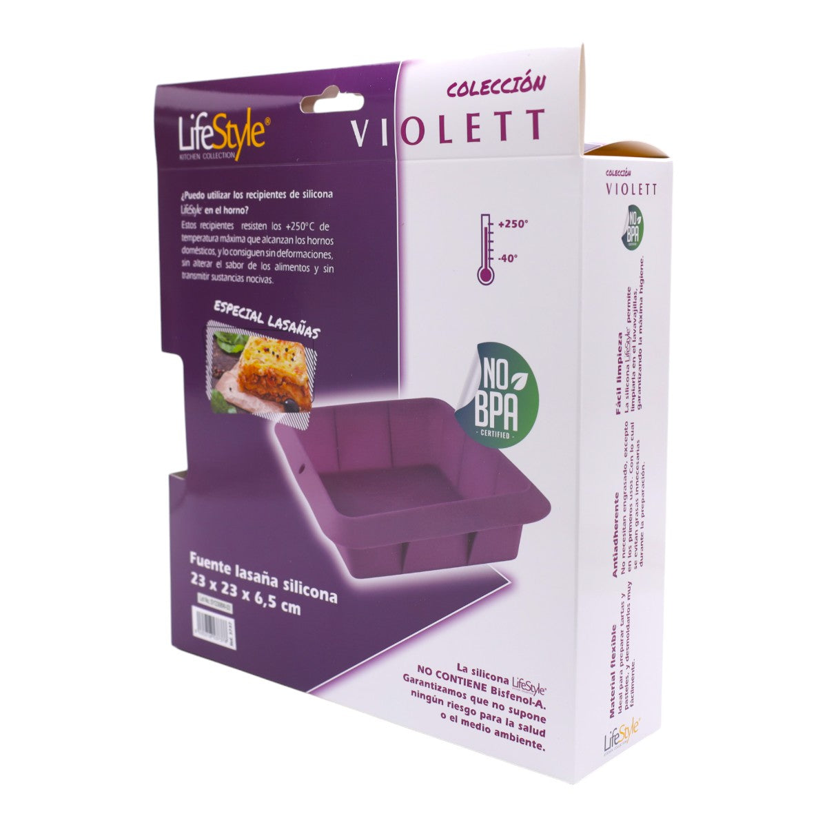 Molde de horno cuadrado de silicona morada que resiste hasta +250º C en el horno para hacer lasaña 23 x 23 x 6,5 cm