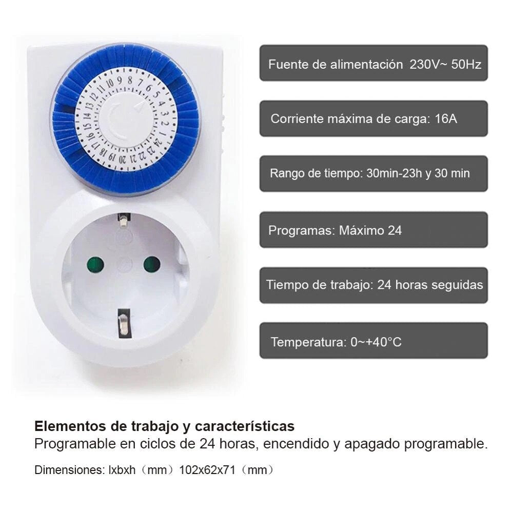 Enchufe eléctrico temporizador digital mecánico de 24 horas 230V/16A