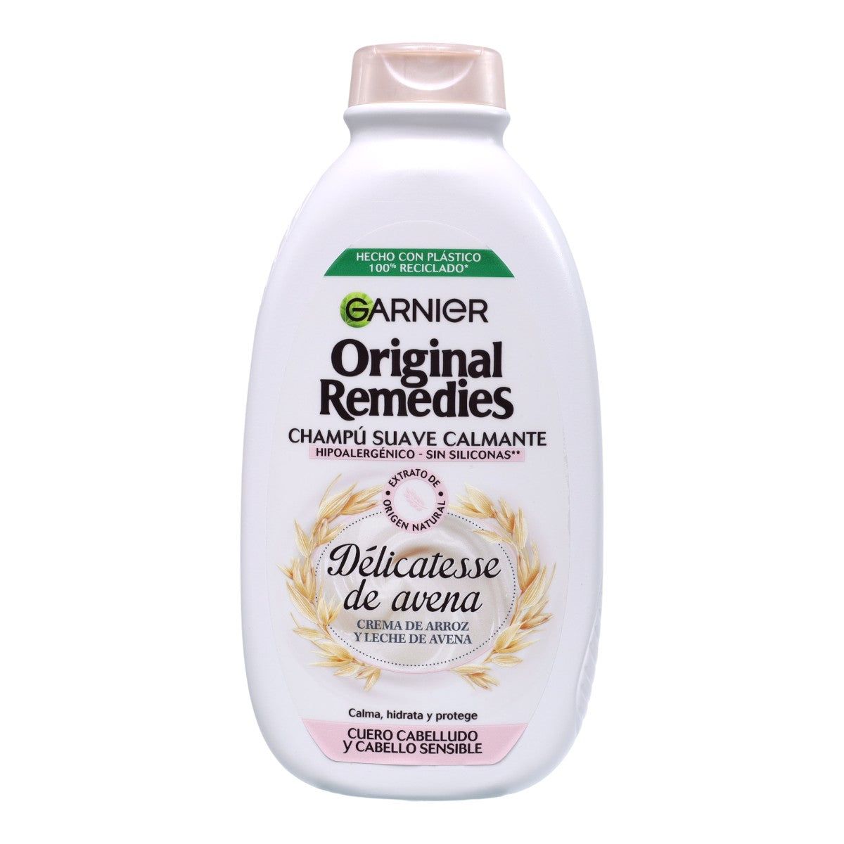 Garnier Original Remedies Champú Suave Calmante Delicatesse de Avena, Hipoalergénico, Sin Siliconas, Cuero Cabelludo y Cabello Sensible, 400 ml