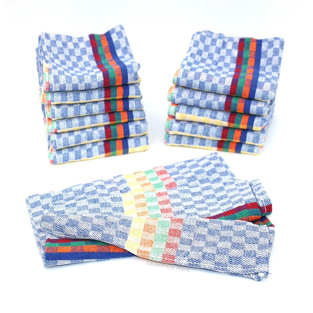Juego de 12 Paños, Paños de cocina 80% Algodón, Pack de ahorro 12 Unidades Colores con Rayas Azul Verde Rojo, Paño Vajilla