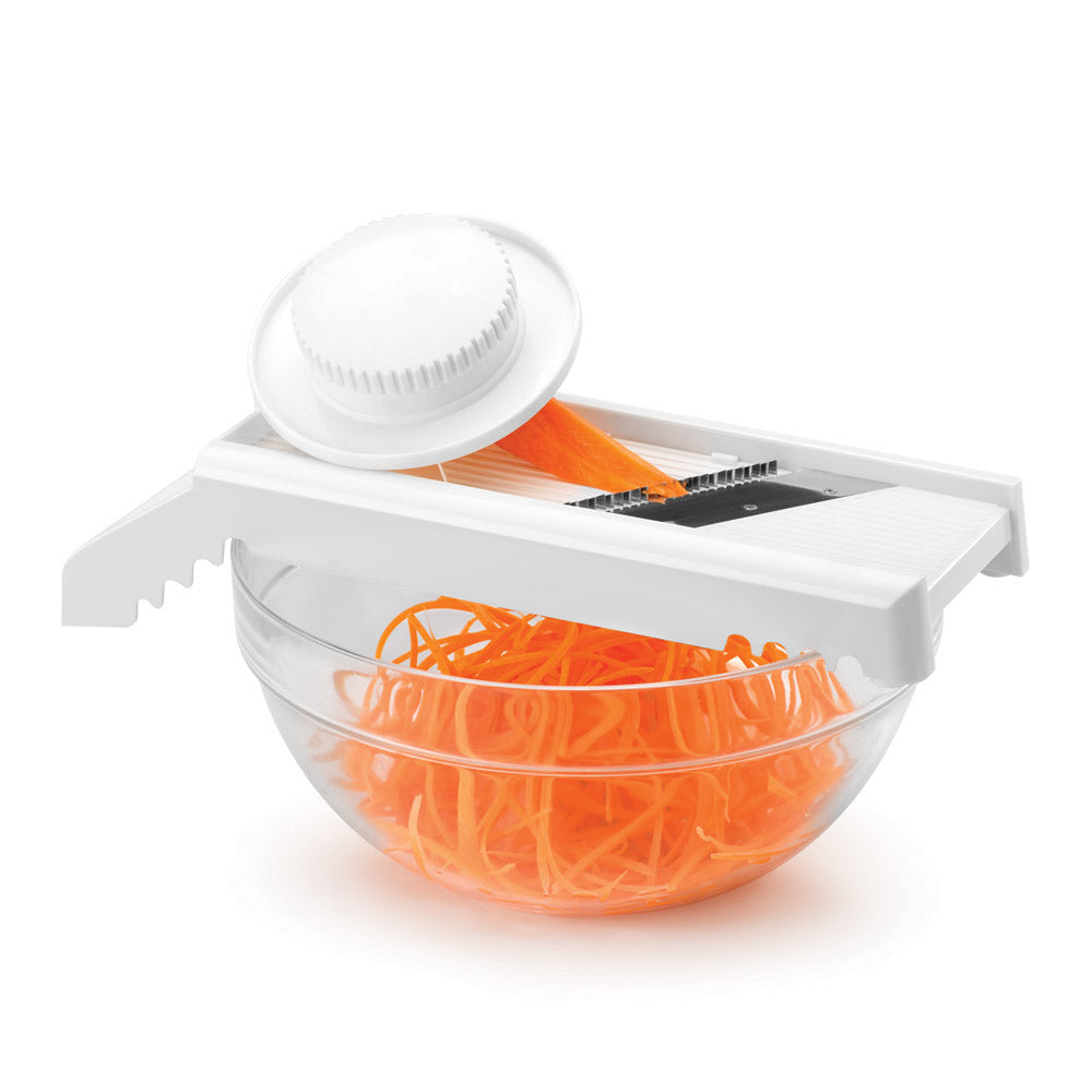 METALTEX Rallador multiuso MANDOLINO Cuchillas de acero inox y cuerpo ABS color blanco Con prensador - protector