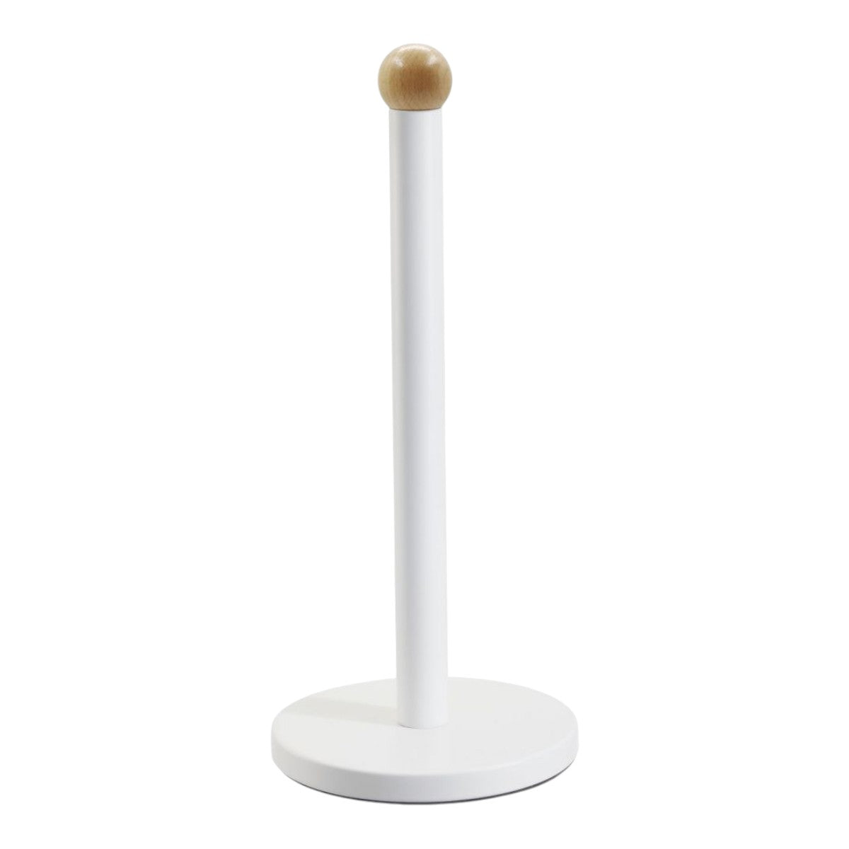 Portarrollos de cocina blanco y madera, soporte vertical para toallas de papel de cocins, diseño nórdico con base estable para rollo de cocina estándar Ø15x34 cm de alto