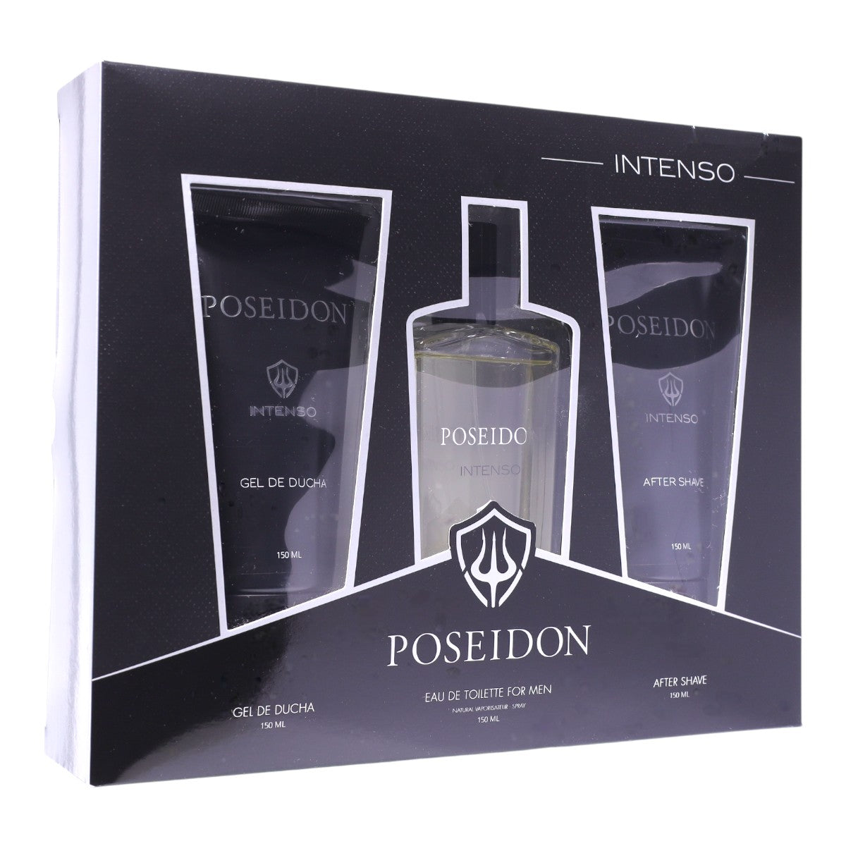 POSEIDON Intenso Estuche para Hombre – Eau de Toilette 150 ml + After Shave 150 ml + Gel de Ducha 150 ml – Set Regalo Fragancia Masculina Hecho en España